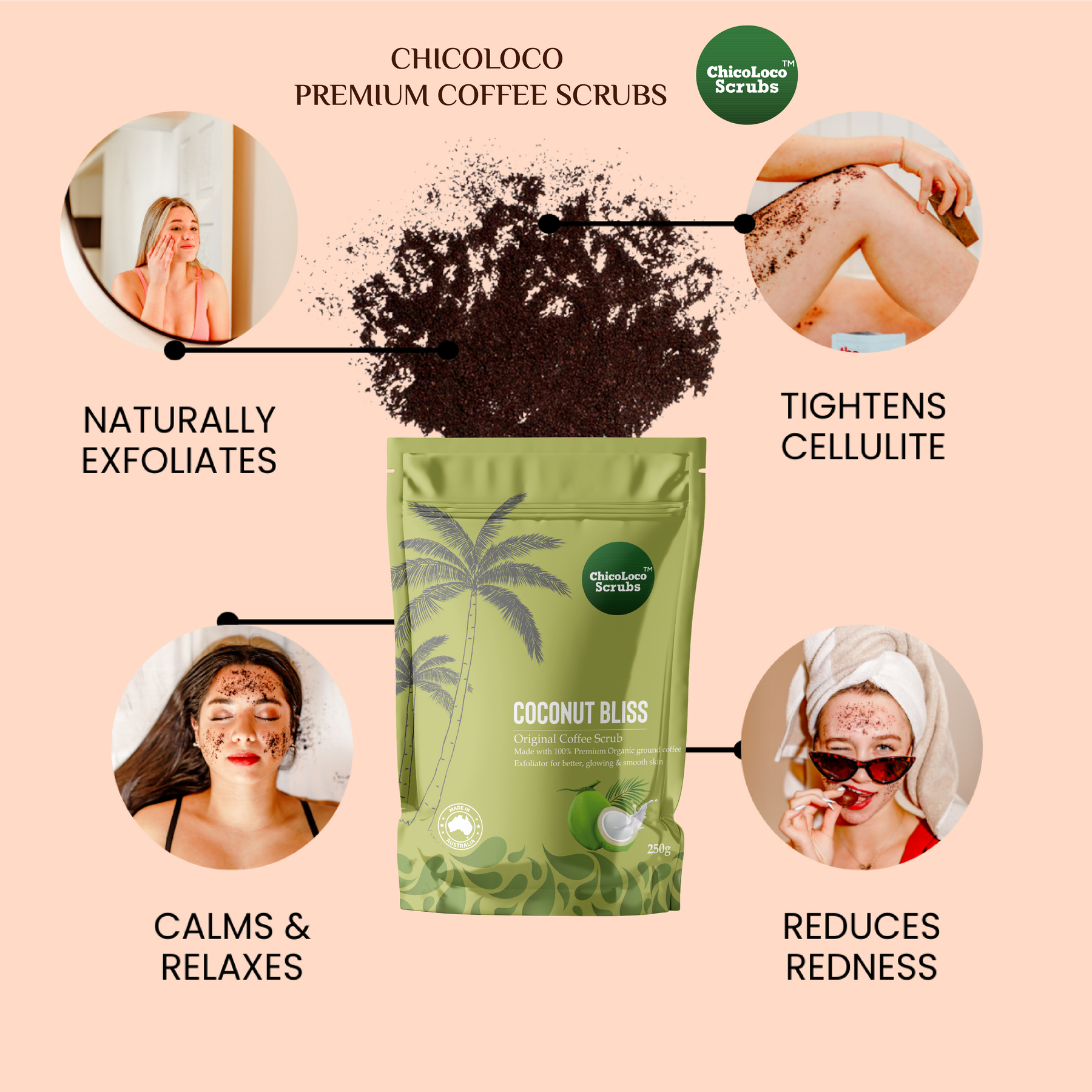 Original Coffee Scrubs. Made with our own coffee grounds with coconut oil and other beautiful ingredients.