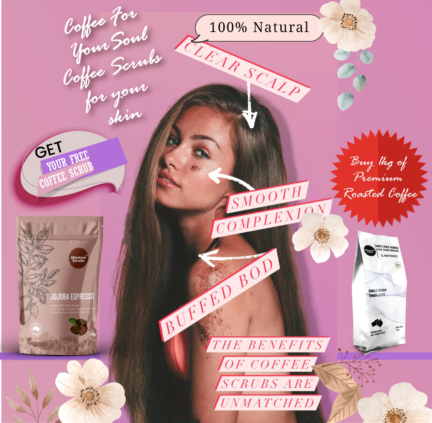 For Men & Women 100% Organic coffee Scrubs created for you with the best organic Timor Leste coffee.